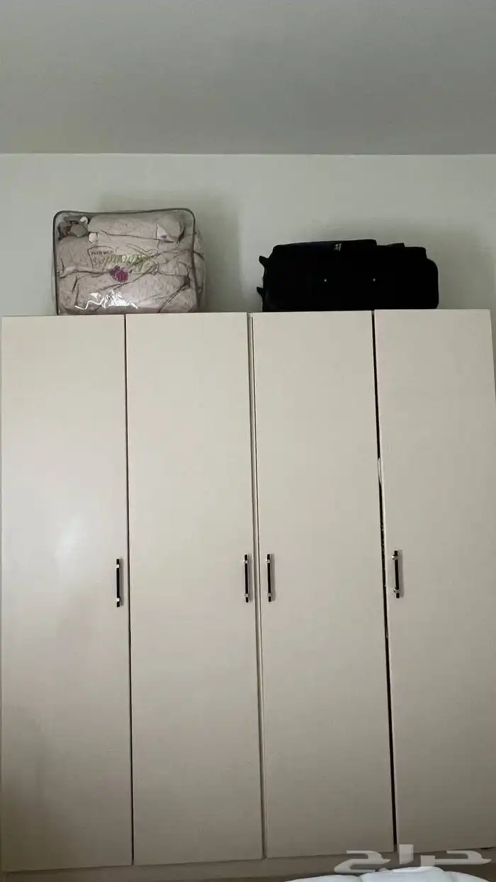 دولاب بيج اربع أبواب 2 تعليق و2 رفوف جوهركل رف ثلاث رفوف وثلاث ادراج الدولاب تفصيل في محل اثاث مده الاستخدام 4 أشهر جديد سبب البيع تغير الاثاث السعر 1700 ﷼